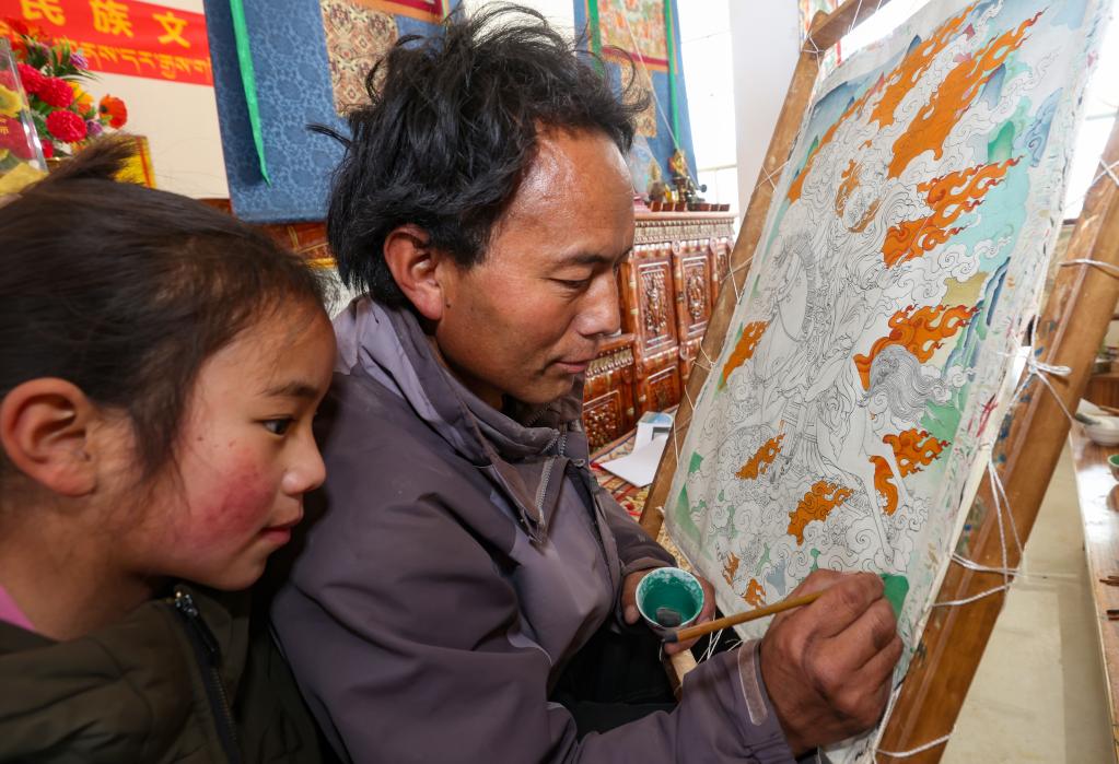 嘎桑堅(jiān)參所在的堤無瑪藝術(shù)傳承專業(yè)合作社由桑珠榮亞中村村民、西藏一級(jí)唐卡畫師西繞尼瑪創(chuàng)立。據(jù)介紹,目前合作社有25名員工,員工日工資最高超過200元。
