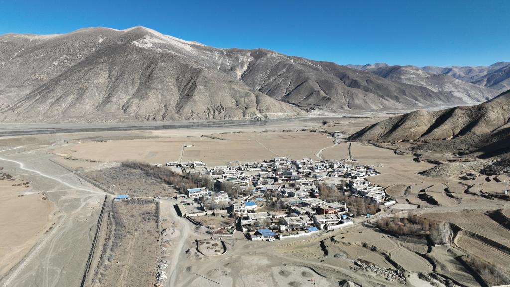 這是平拉家所在的西藏日喀則市拉孜縣扎西宗鄉(xiāng)雜村(1月22日攝,無(wú)人機(jī)照片)。新華社記者 晉美多吉 攝