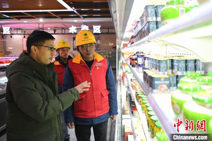 圖為米瑪次仁(右二)和同事前往超市檢查電力線路?!∷骼蚀稳?攝