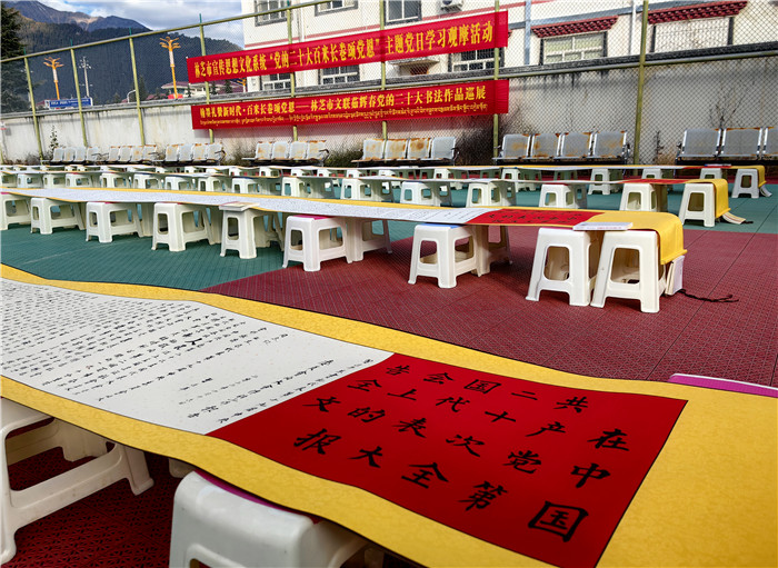 創(chuàng)新載體,全方位宣傳。林芝市統(tǒng)籌各類(lèi)宣傳資源,線(xiàn)上線(xiàn)下同頻共振,全方位、多角度、寬領(lǐng)域、深層次宣傳黨的二十大精神和區(qū)黨委十屆三次全會(huì)、市委二屆三次全會(huì)精神,營(yíng)造學(xué)習(xí)宣傳的濃厚氛圍。一是新聞宣傳強(qiáng)信心。林芝報(bào)、林芝廣播電視臺(tái)、西藏林芝網(wǎng)、微林芝等市屬主流媒體紛紛開(kāi)設(shè)《學(xué)習(xí)貫徹黨的二十大》《新時(shí)代新征程新偉業(yè)》等多個(gè)專(zhuān)題專(zhuān)欄,持續(xù)推出學(xué)習(xí)貫徹黨的二十大精神相關(guān)報(bào)道。截至目前,共刊播《基層宣講員讓黨的二十大精神翩翩飛入百姓家》《軍民共話(huà)美好未來(lái) 繪就美麗鄉(xiāng)村新畫(huà)卷》等相關(guān)新聞2500余條。二是社會(huì)面宣傳筑同心。采取“屏、板、欄、幅”立體宣傳方式,在全市各級(jí)黨政機(jī)關(guān)和企事業(yè)單位大門(mén)LED電子顯示屏以及市、縣城區(qū)主要街道、跨街龍門(mén)、出租車(chē)頂燈、汽車(chē)站等公共場(chǎng)所的宣傳媒介上滾動(dòng)播放自治區(qū)統(tǒng)一印發(fā)的宣傳標(biāo)語(yǔ)1.2萬(wàn)余條次,更新懸掛國(guó)旗3.5萬(wàn)余面,制作發(fā)放宣傳海報(bào)1.5萬(wàn)張、宣傳品2500余個(gè),形成抬頭可見(jiàn)、隨處可學(xué)的濃厚社會(huì)氛圍。察隅縣上察隅鎮(zhèn)遲巴村村“兩委”和駐村工作隊(duì)用彩色粉筆繪制黨的二十大、“新黨章”等主題黑板報(bào),用畫(huà)筆向村民傳遞黨的最新政策,深受群眾喜愛(ài)。三是網(wǎng)絡(luò)宣傳聚民心。充分發(fā)揮新媒體平臺(tái)宣傳形式豐富的特點(diǎn),持續(xù)推送重磅報(bào)道和重點(diǎn)文章,策劃打造一批融媒體產(chǎn)品,在全網(wǎng)迅速興起學(xué)習(xí)宣傳貫徹會(huì)議精神熱潮。市委網(wǎng)信辦策劃制作短視頻《學(xué)習(xí)黨的二十大精神 談心得感悟》、“林芝融媒”抖音號(hào)推出《二十大時(shí)光》微視頻,將鏡頭對(duì)準(zhǔn)二十大代表、基層黨員群眾,展現(xiàn)全市干部群眾積極向上的良好風(fēng)貌?!鞍鸵巳诿健倍兑籼?hào)推出“黨的二十大精神快問(wèn)快答”系列活動(dòng),線(xiàn)上線(xiàn)下聯(lián)動(dòng)學(xué)習(xí),推動(dòng)黨的二十大精神入腦入心?!安煊缛诿健倍兑籼?hào)策劃開(kāi)展《鄉(xiāng)村振興正當(dāng)時(shí)》黨的二十大主題抖音直播活動(dòng),通過(guò)網(wǎng)絡(luò)直觀展現(xiàn)新時(shí)代察隅新農(nóng)村、新氣象、新希望。目前已開(kāi)展7場(chǎng)直播活動(dòng),觀看人數(shù)達(dá)10萬(wàn)人次。四是文藝宣傳暖人心。充分發(fā)揮市、縣(區(qū))、村三級(jí)文藝文化團(tuán)體作用,組織開(kāi)展“深入生活 扎根人民”“幸福不忘共產(chǎn)黨 陽(yáng)光路上夢(mèng)起航”等各類(lèi)文藝文化活動(dòng),精心打造文藝精品力作,用文藝活動(dòng)、文藝作品溫暖人心。截至目前,各級(jí)文藝演出隊(duì)開(kāi)展文藝匯演293場(chǎng)次,參與人數(shù)4.2萬(wàn)余人次;創(chuàng)作推出音樂(lè)作品《沐浴幸?!贰z影作品《我和國(guó)旗》、書(shū)法美術(shù)作品《建功新時(shí)代 奮進(jìn)新征程》、文學(xué)作品《黨的光輝照萬(wàn)家》等文藝作品300余個(gè)。波密縣完全小學(xué)在崗云杉林景區(qū)組織開(kāi)展“學(xué)習(xí)黨的二十大,爭(zhēng)做好少年”采風(fēng)寫(xiě)生活動(dòng),學(xué)生們以文藝創(chuàng)作的形式學(xué)習(xí)黨的二十大精神,并將學(xué)習(xí)成果轉(zhuǎn)化到作品中。市民族藝術(shù)團(tuán)以深入挖掘歷史文化、講好紅色故事為主題,籌拍了微電影《立定村屹立的紅旗》。市文聯(lián)書(shū)法美術(shù)家協(xié)會(huì)理事茹輝春同志,在黨的二十大召開(kāi)后用行、楷兩種書(shū)法形式撰寫(xiě)了黨的二十大報(bào)告全文書(shū)卷,書(shū)卷共有八卷,每卷長(zhǎng)30米。市委宣傳部、市文廣局、市文聯(lián)組織市書(shū)法美術(shù)家協(xié)會(huì)開(kāi)展“禮贊二十大·送福進(jìn)萬(wàn)家”林芝市2023年新春書(shū)法美術(shù)家“深入生活 扎根人民”送祝福和采風(fēng)活動(dòng),共開(kāi)展送春聯(lián)活動(dòng)15場(chǎng)次,送出對(duì)聯(lián)、福字、掛軸、繪畫(huà)等作品8950幅(對(duì)),服務(wù)群眾6700余人次。