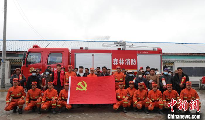 林芝市森林消防支隊(duì)巴宜區(qū)中隊(duì)消防救援人員與地方民眾合影留念。西繞拉翁 攝