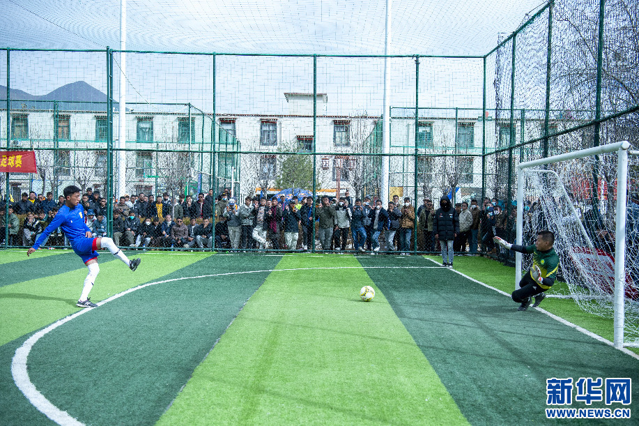 2月14日,巔炯邁瓦隊(duì)球員在點(diǎn)球大戰(zhàn)中射門。新華網(wǎng) 旦增努布 攝