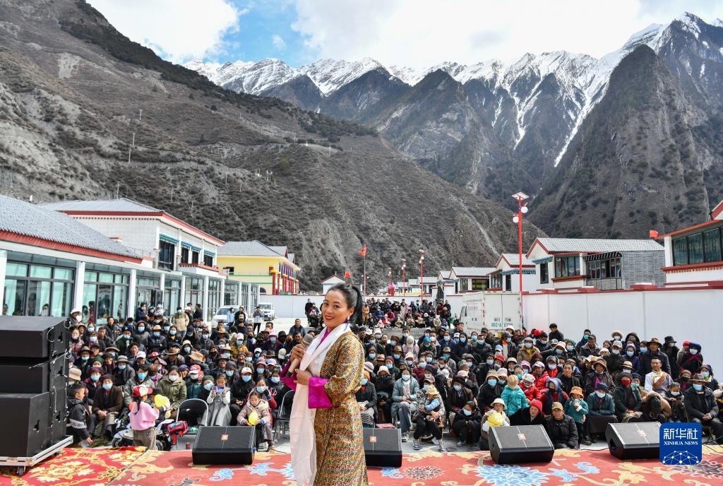當(dāng)日,西藏山南市隆子縣藝術(shù)團(tuán)來(lái)到隆子縣斗玉珞巴民族鄉(xiāng)繞讓搬遷安置點(diǎn)開展迎接藏歷新年文藝演出。據(jù)悉,該安置點(diǎn)的群眾于2023年1月上旬完成搬遷入住,他們將在新家迎接即將到來(lái)的藏歷新年。