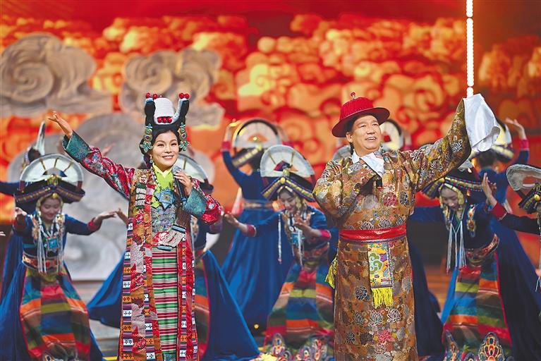 2023年藏歷水兔新年聯(lián)歡晚會于2月20日晚在拉薩舉行。這是西藏廣播電視臺首次實現(xiàn)高清直播藏晚。圖為晚會現(xiàn)場。記者 旦增西旦 攝