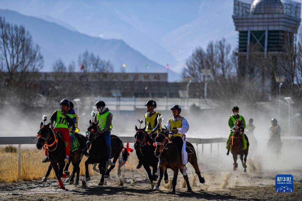 2月23日,在拉薩賽馬場(chǎng)舉辦馬術(shù)表演已成為當(dāng)?shù)貞c祝新年的傳統(tǒng),深受廣大群眾喜愛。騎手們英姿颯爽,為觀眾們帶來騎馬拾哈達(dá)、騎馬射箭等精彩表演。