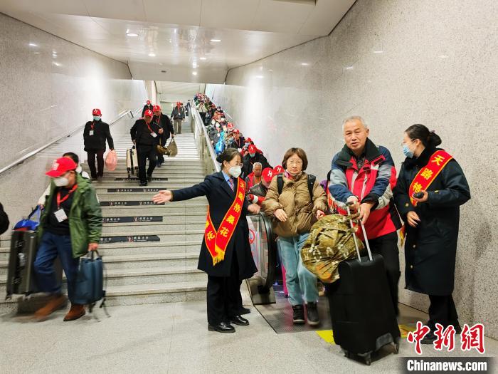 圖為乘坐首趟進藏旅游專列的旅客進站。楊紅健 攝