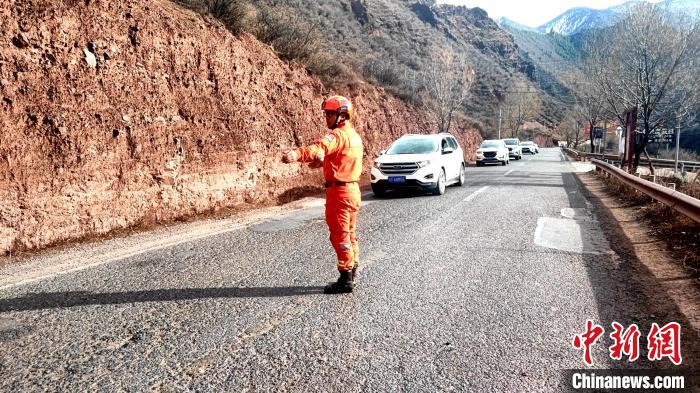 圖為昌都市卡若區(qū)森林消防中隊“火焰藍”志愿服務隊指揮過往車輛安全通行。 卡若區(qū)森林消防中隊“火焰藍”志愿服務隊供圖