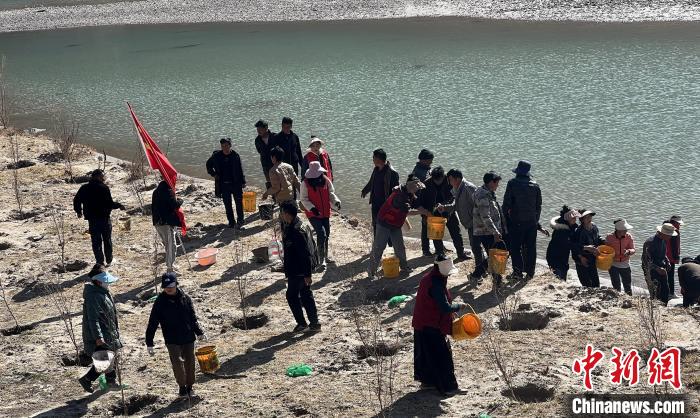 圖為朱巴龍鄉(xiāng)志愿者開展植樹造林活動。 芒康縣供圖