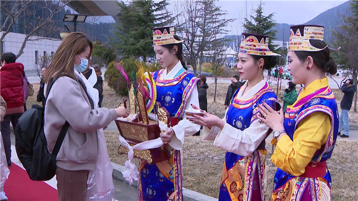 在歡迎儀式上,漂亮的工布姑娘唱起了歌,帥氣的工布小伙端起了香醇的青稞酒,副市長(zhǎng)段剛輝為游客們獻(xiàn)上潔白的哈達(dá),對(duì)遠(yuǎn)道而來(lái)的客人表示熱烈的歡迎和誠(chéng)摯的祝福,并在致辭中向游客們介紹了林芝的自然風(fēng)光和民俗文化。