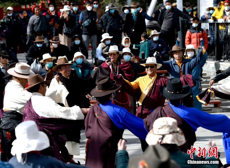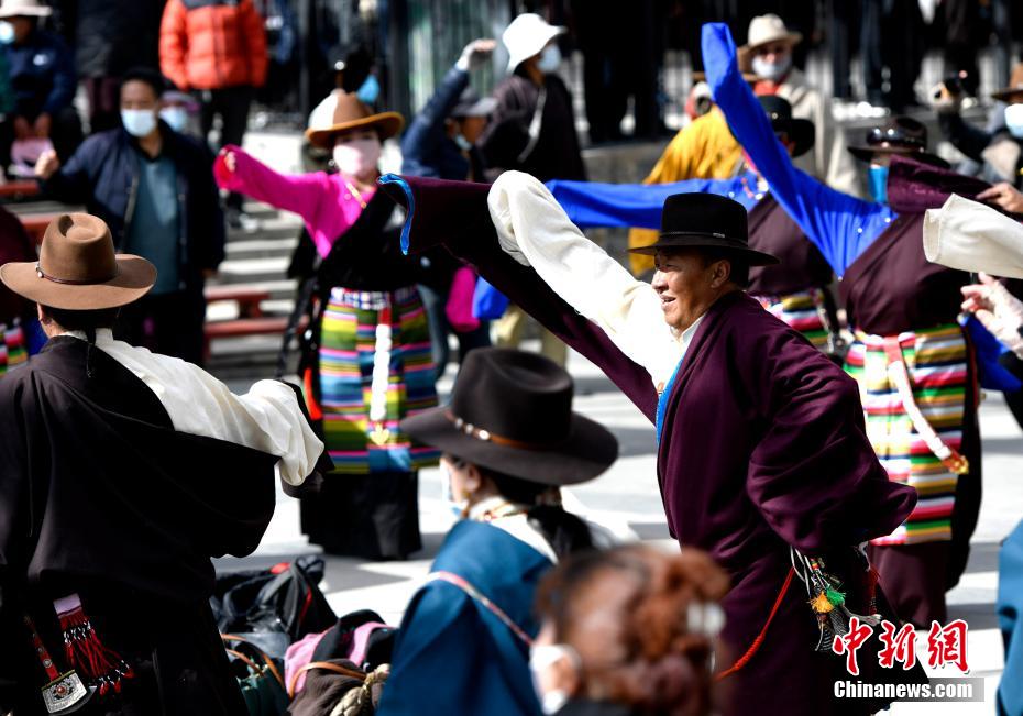 3月9日,西藏拉薩,民眾在宗角祿康公園跳鍋莊舞。李林 攝