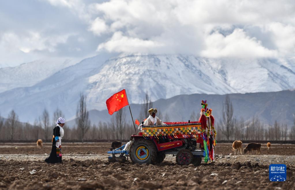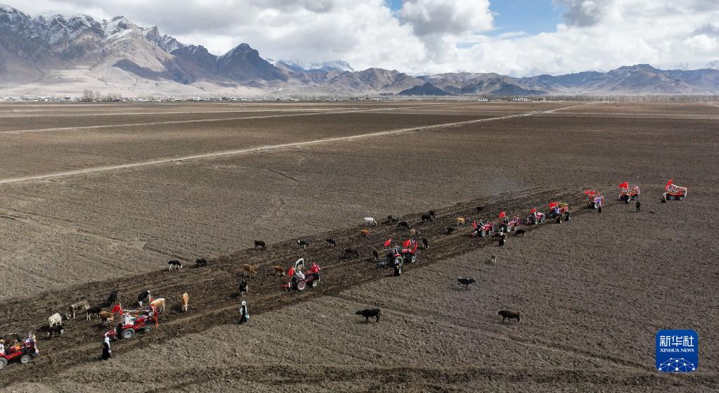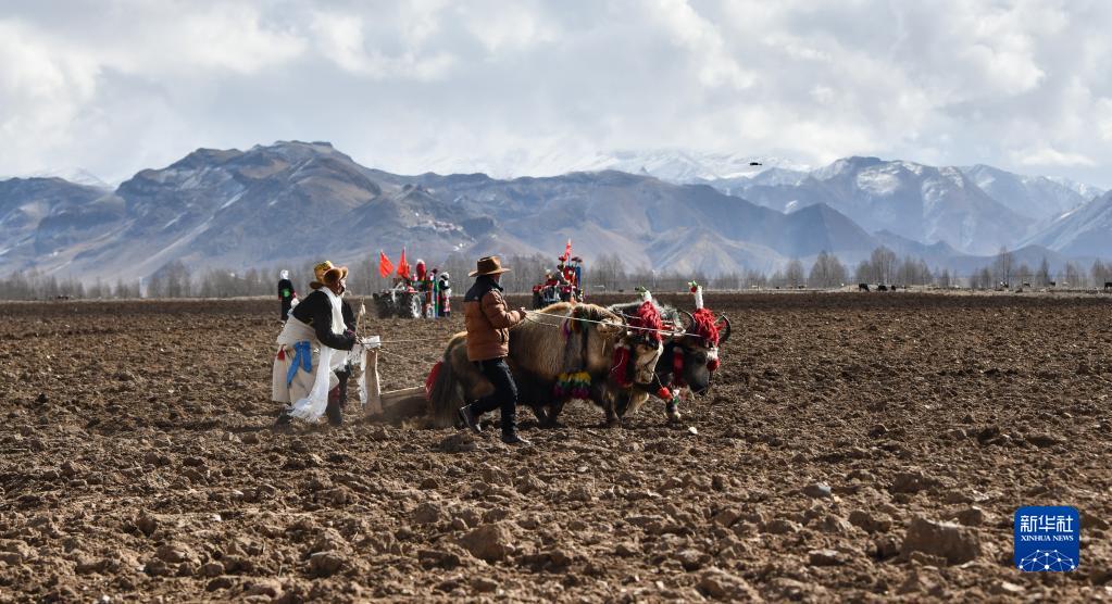 西藏拉薩市林周縣強嘎村的春耕儀式現(xiàn)場(3月16日攝)。新華社記者 晉美多吉 攝
