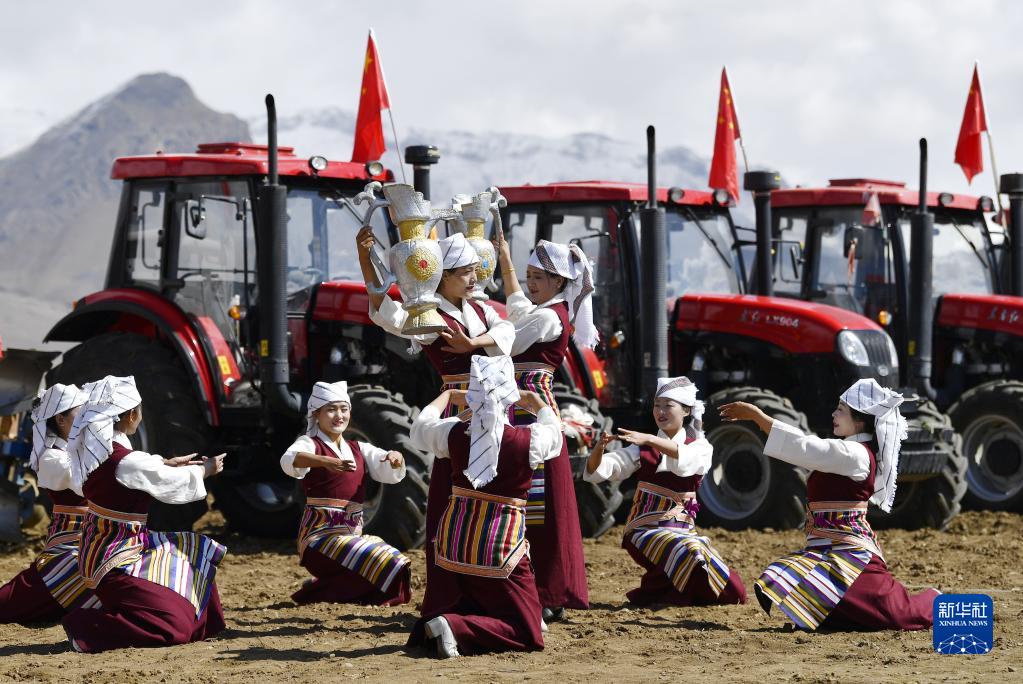 西藏拉薩市林周縣強嘎村的春耕儀式現(xiàn)場(3月16日攝)。新華社記者 張汝鋒 攝