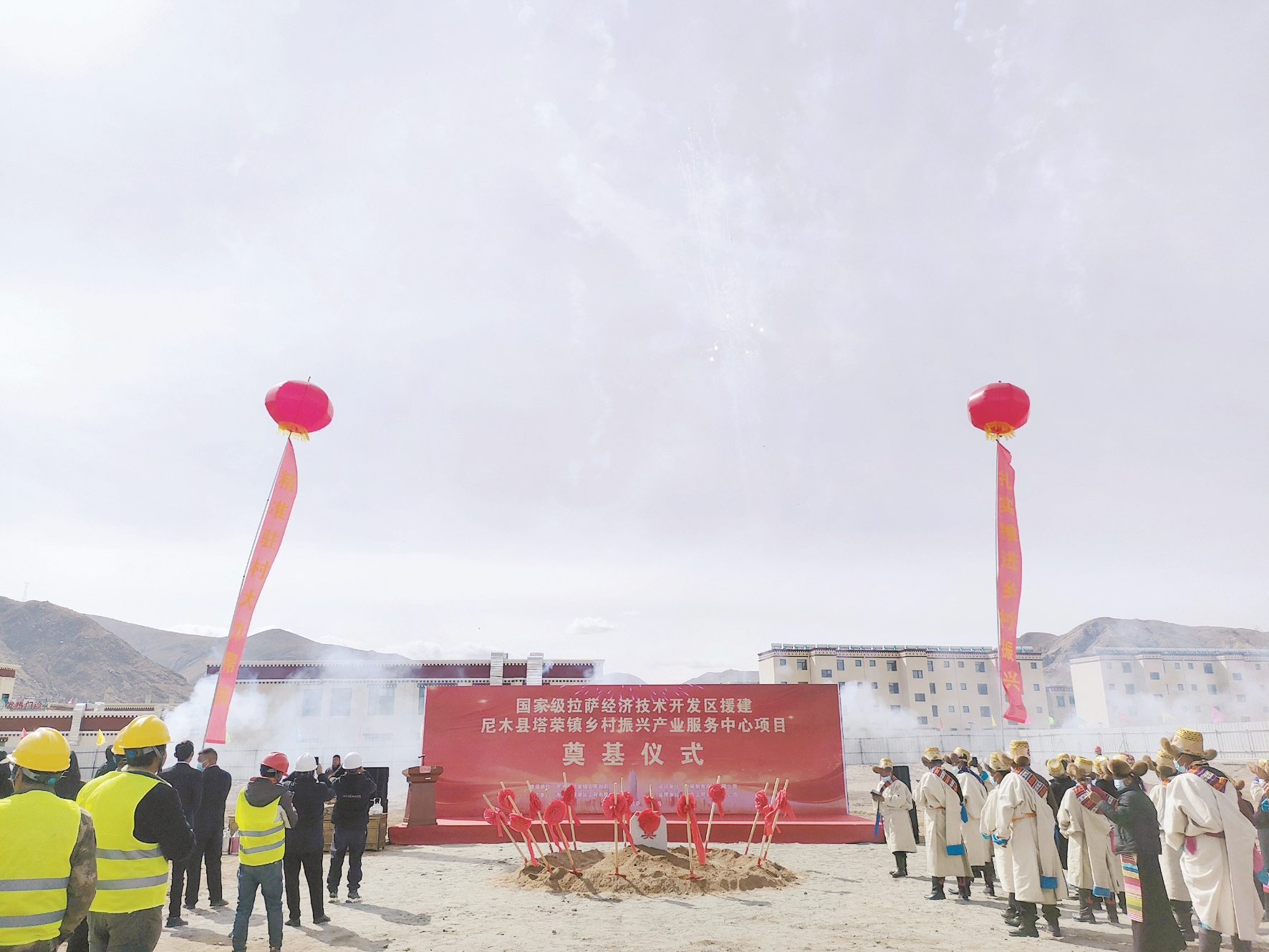 3月20日,拉薩經(jīng)開區(qū)援建尼木縣塔榮鎮(zhèn)產(chǎn)業(yè)服務(wù)中心項(xiàng)目奠基儀式舉行。圖為奠基儀式現(xiàn)場(chǎng)。 拉薩融媒記者 李從芳攝