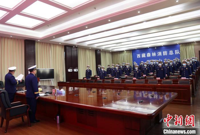 3月22日,分會場更換消防救援銜標(biāo)識。 西藏森林消防總隊供圖