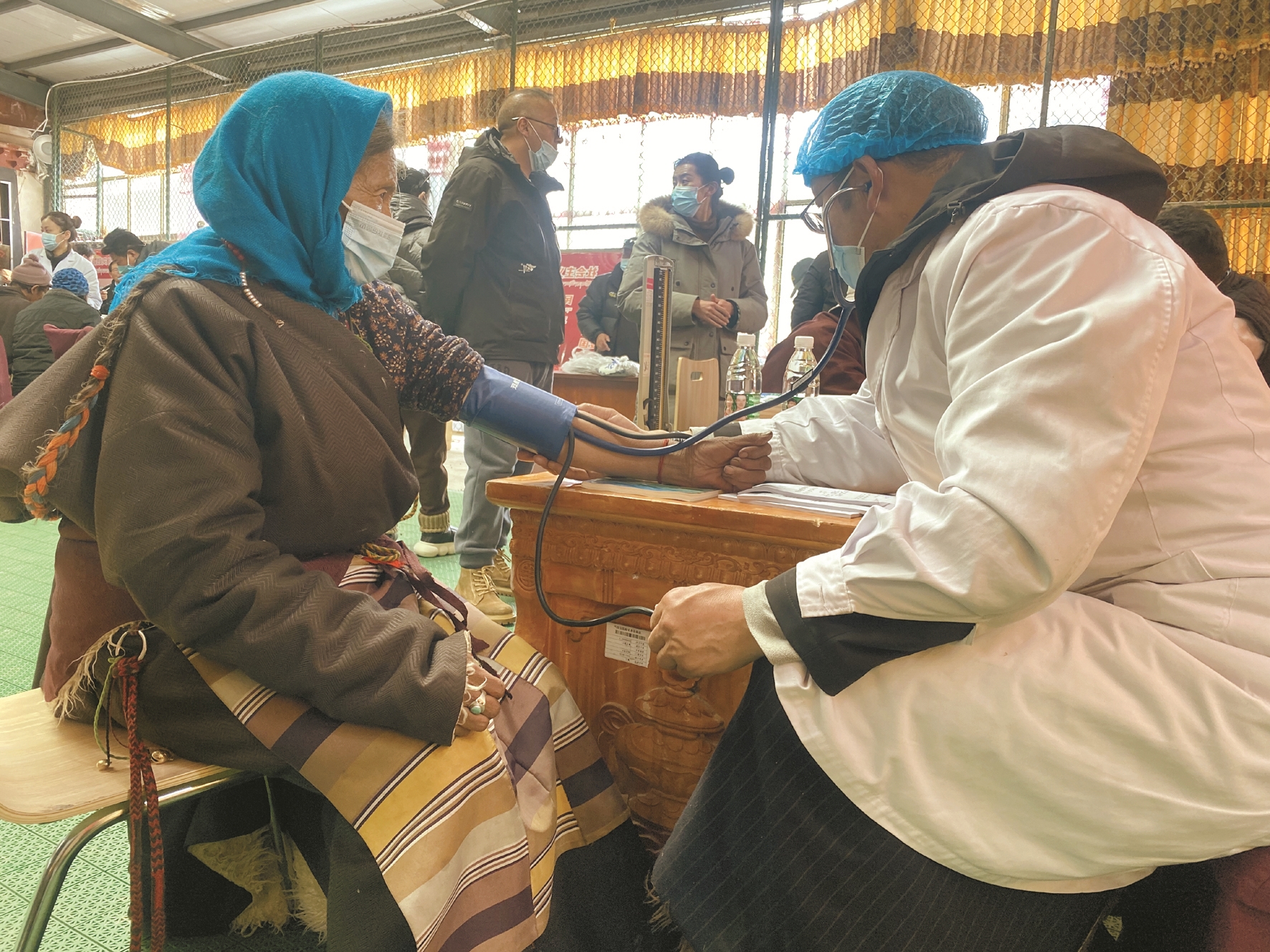 當(dāng)日,納木湖鄉(xiāng)綜合文化站內(nèi)人頭攢動,當(dāng)?shù)啬撩袢罕姷弥獊碜岳_的醫(yī)療專家前來義診,都早早地來到文化站內(nèi)等候。在義診現(xiàn)場,來自市人民醫(yī)院北京“組團(tuán)式”援藏醫(yī)療隊、城關(guān)區(qū)平衡針灸愛心志愿服務(wù)隊和利眾醫(yī)院的專家醫(yī)師們?yōu)榍皝砭驮\的群眾進(jìn)行疾病篩查、心肺聽診、測量血壓、針灸等檢查治療。診療中,醫(yī)生們仔細(xì)詢問群眾的過往病史和身體狀況,耐心細(xì)致地提出治療建議,講解注意事項并免費為群眾發(fā)放所需藥物。