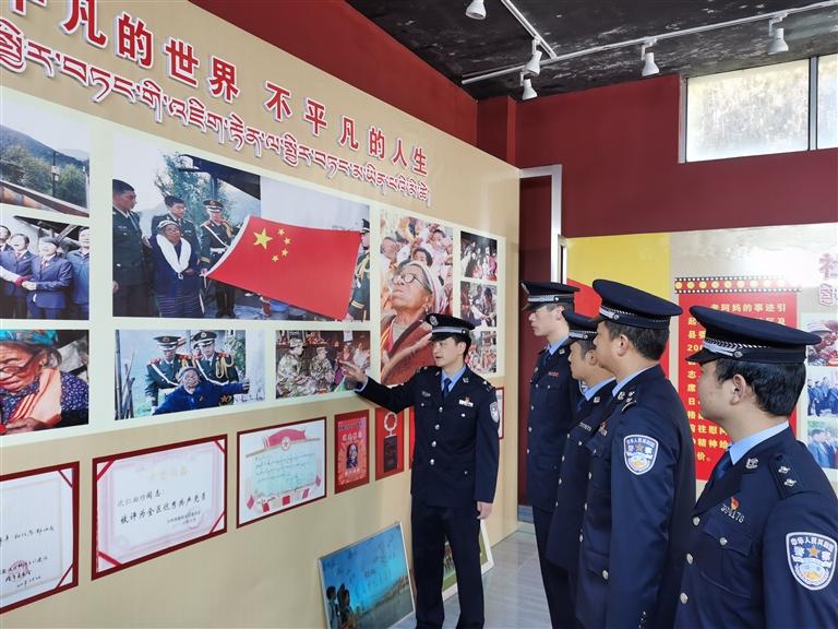 日喀則邊境管理支隊(duì)樟木邊境派出所民警參觀“國(guó)旗老阿媽”紀(jì)念館。記者 趙文慧 攝