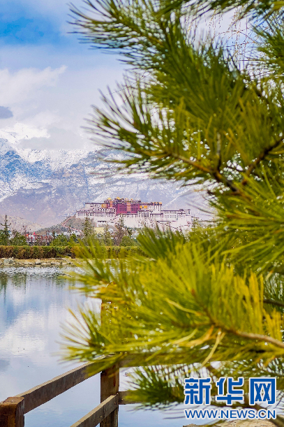 3月30日,在拉薩市南山公園拍攝的雪后布達拉宮。新華網(wǎng) 柑丹鴦琦攝
