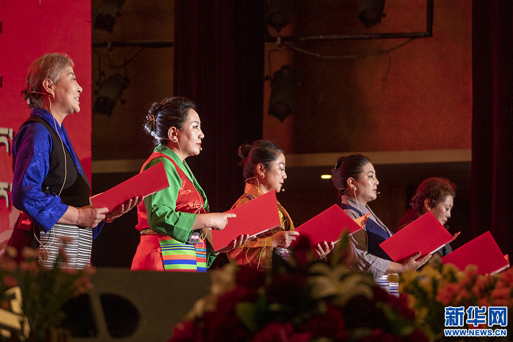4月23日,拉薩萌升老年大學(xué)學(xué)員在“夕陽(yáng)紅”西藏老年閱讀活動(dòng)現(xiàn)場(chǎng)朗誦。新華網(wǎng) 旦增努布 攝