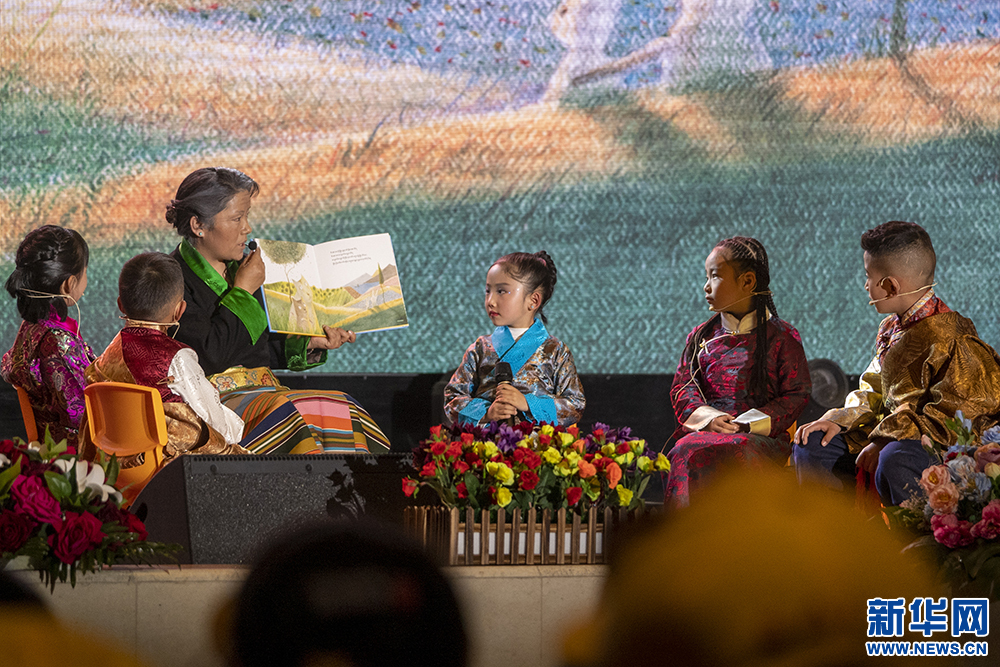 4月23日,諾諾童書館館員在講述繪本故事。新華網(wǎng) 旦增努布 攝
