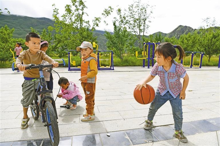 圖為山南市加查縣冷達鄉(xiāng)共康村的孩子們在干凈整潔的廣場上玩耍。記者 李洲 攝