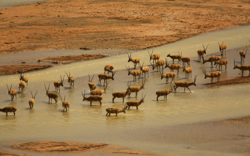 部分雄性藏羚在羌塘國家公園候選區(qū)江俄藏布泡澡 (羌塘國家級(jí)自然保護(hù)區(qū)管理局供圖)