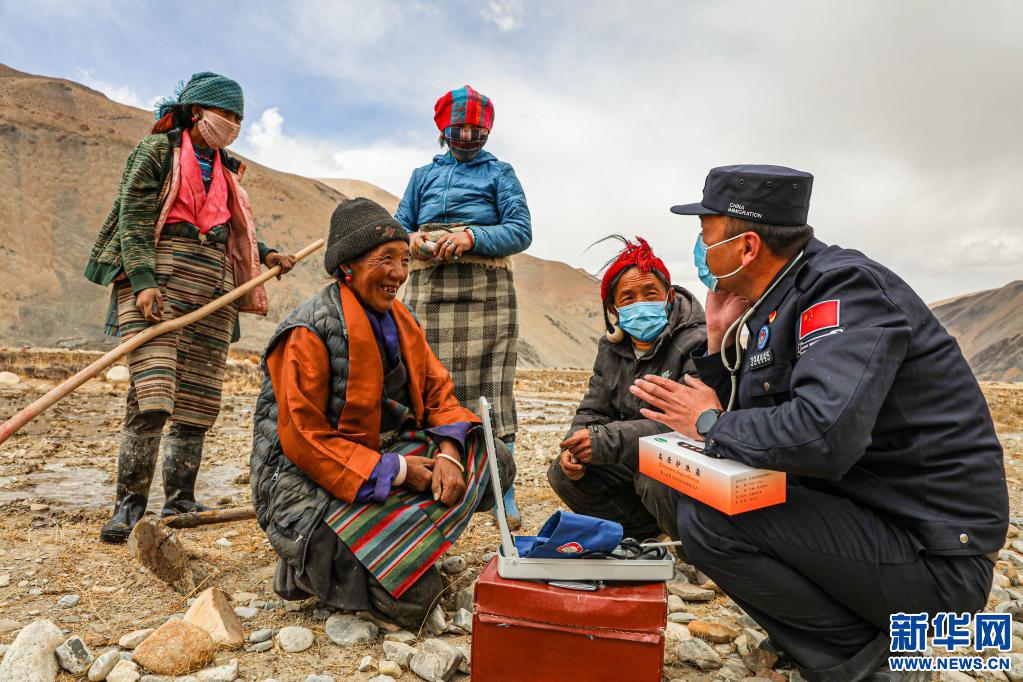 珠峰邊境派出所民警前往轄區(qū)為正在農(nóng)作的群眾義診,并為他們發(fā)放藥品。