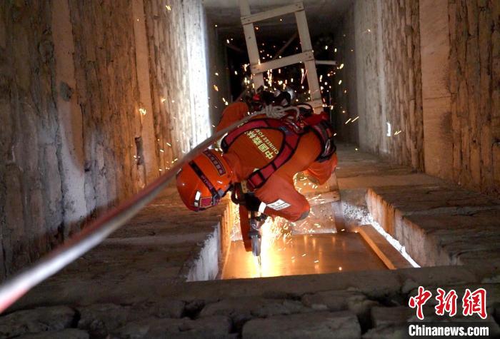 圖為演練中指戰(zhàn)員在電梯井進行破拆。西繞拉翁 攝