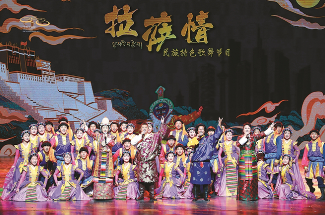 西藏,素有“歌舞的海洋”的美譽(yù),來自民間的歌舞品類眾多、風(fēng)格各異。演出中,10多個極具藏族文化特色的歌舞類節(jié)目精彩亮相,既有歷史悠久、蜚聲中外的藏戲、傳統(tǒng)舞蹈等非遺經(jīng)典,也有反映近年來拉薩城市新面貌、人民生活新變化的歌舞節(jié)目,全面展示了拉薩不同時期、不同內(nèi)容、不同形式的風(fēng)土人情和人文魅力。