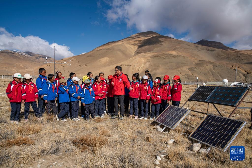 5月15日,珠峰站工作人員席振華給孩子們講解科學(xué)儀器的功能作用。新華社記者 晉美多吉 攝