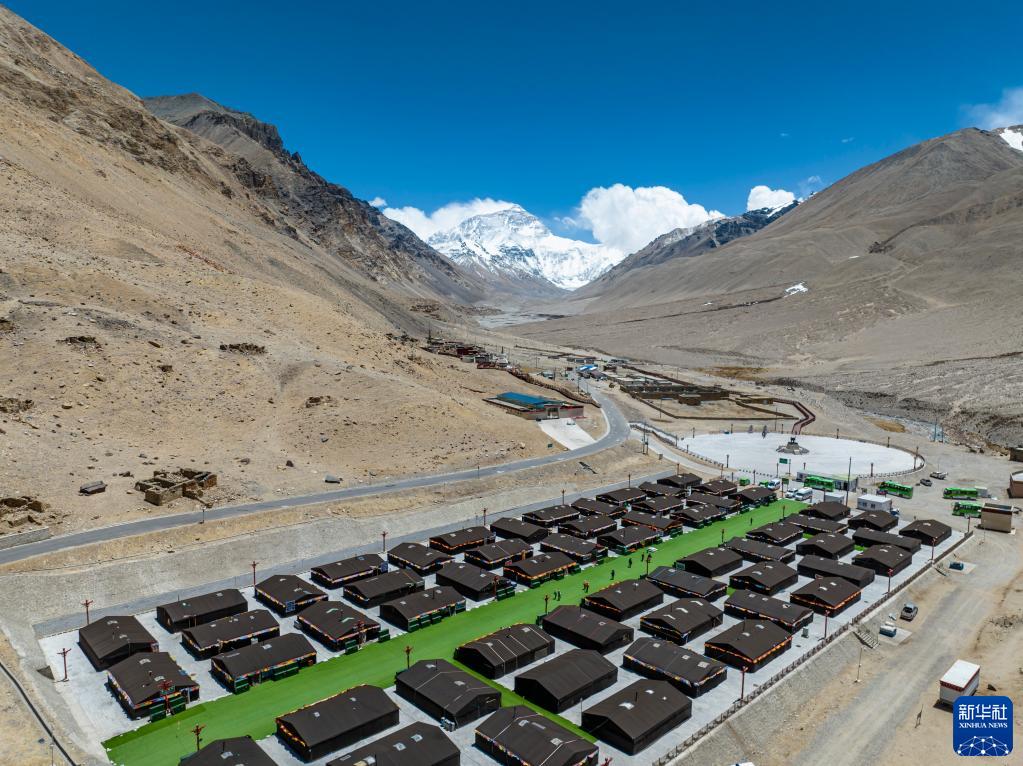 這是珠峰游客大本營(yíng)的帳篷旅館(5月20日攝,無(wú)人機(jī)照片)。新華社記者 孫非 攝