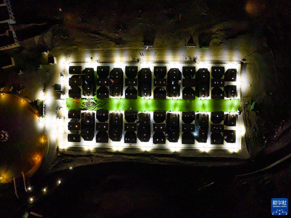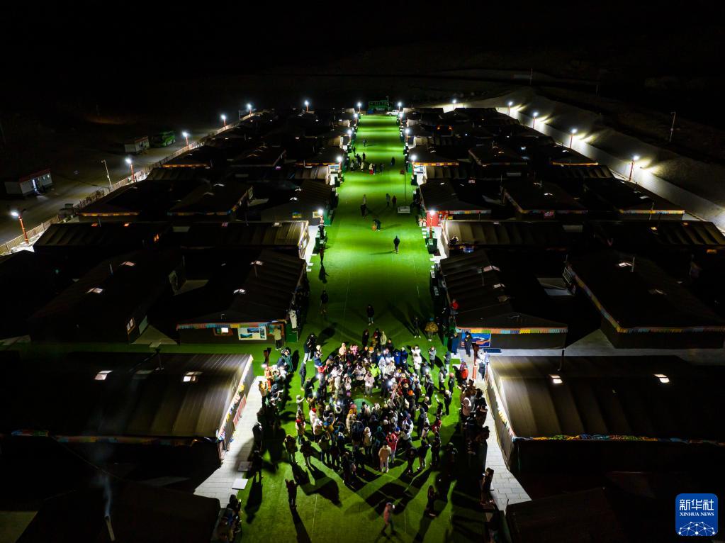 這是夜晚的珠峰游客大本營(yíng)帳篷旅館(5月16日攝,無(wú)人機(jī)照片)。新華社記者 孫非 攝