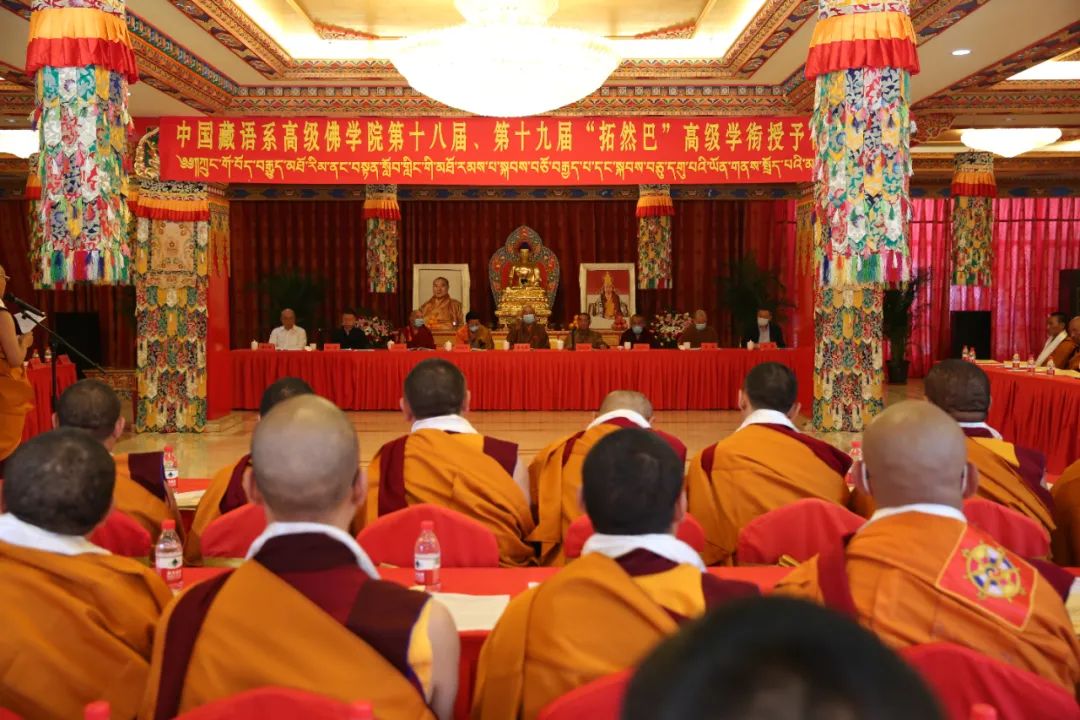 5月23日,藏傳佛教第十八屆、十九屆“拓然巴”高級(jí)學(xué)銜授予儀式在北京中國(guó)藏語(yǔ)系高級(jí)佛學(xué)院舉行。來(lái)自藏傳佛教格魯派、寧瑪派、薩迦派、噶舉派、苯波派的62名學(xué)員,經(jīng)過(guò)3年刻苦學(xué)習(xí),圓滿完成學(xué)業(yè),取得中國(guó)藏語(yǔ)系高級(jí)佛學(xué)院高級(jí)學(xué)銜班畢業(yè)證書(shū)。經(jīng)過(guò)嚴(yán)格的資格審查、辯經(jīng)考試、論文答辯,62名學(xué)員全部獲得藏傳佛教“拓然巴”高級(jí)學(xué)銜。