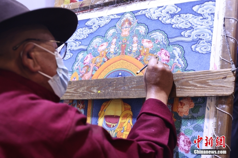 5月23日,“2023·中國(guó)西藏發(fā)展論壇”在北京舉行。會(huì)場(chǎng)外,活潑獨(dú)特的藏式迎賓舞蹈、展示西藏人文自然風(fēng)貌的圖片,已在論壇開(kāi)幕前預(yù)熱起探討西藏新發(fā)展的氛圍。圖為藏族藝人現(xiàn)場(chǎng)進(jìn)行唐卡繪制。