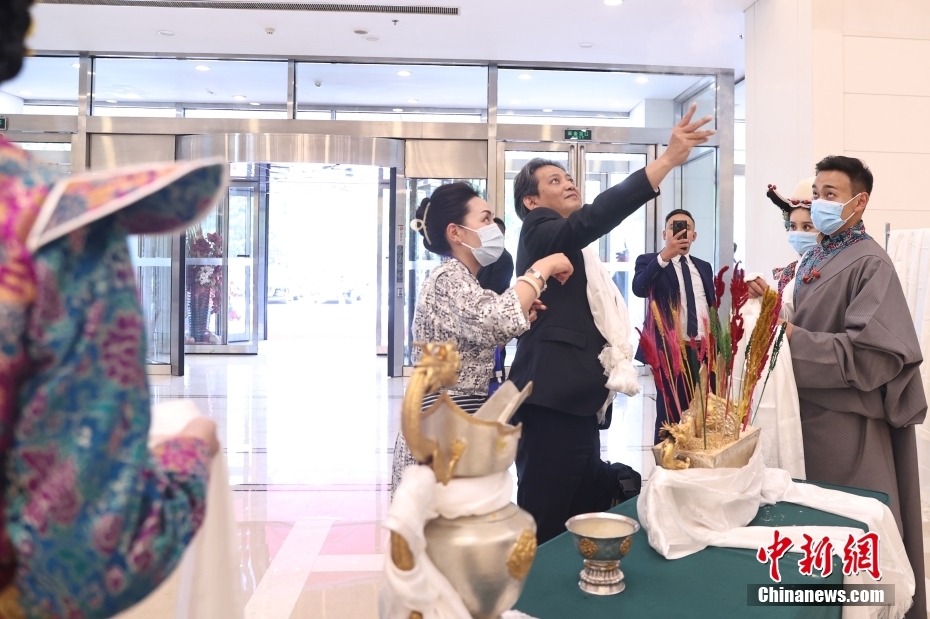 5月23日,“2023·中國(guó)西藏發(fā)展論壇”在北京舉行。會(huì)場(chǎng)外,活潑獨(dú)特的藏式迎賓舞蹈、展示西藏人文自然風(fēng)貌的圖片,已在論壇開(kāi)幕前預(yù)熱起探討西藏新發(fā)展的氛圍。圖為著名紀(jì)錄片導(dǎo)演、全球化智庫(kù)(CCG)高級(jí)研究員龍安志(Lawrence Brahm)接受哈達(dá)。