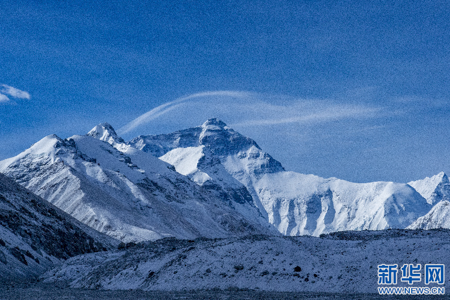 從珠穆朗瑪峰登山大本營拍攝的珠穆朗瑪峰。 新華網(wǎng) 旦增努布 攝