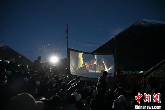 5月31日晚,西藏山南市加查縣放映露天電影?!≈行律缬浾?趙朗 攝