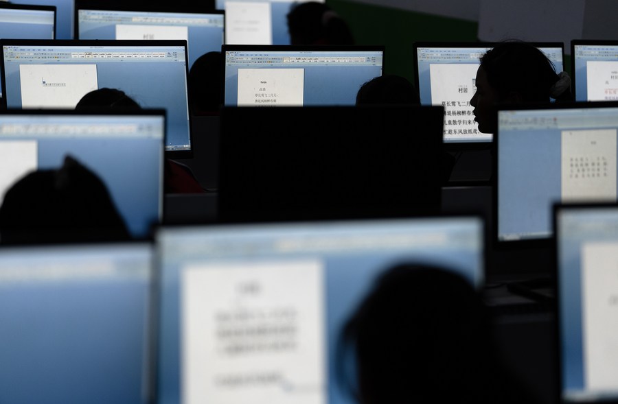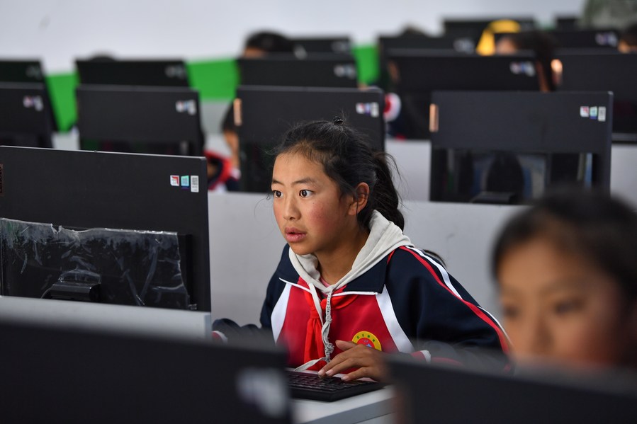6月5日,扎西宗鄉(xiāng)完全小學六年級的學生在上計算機課。