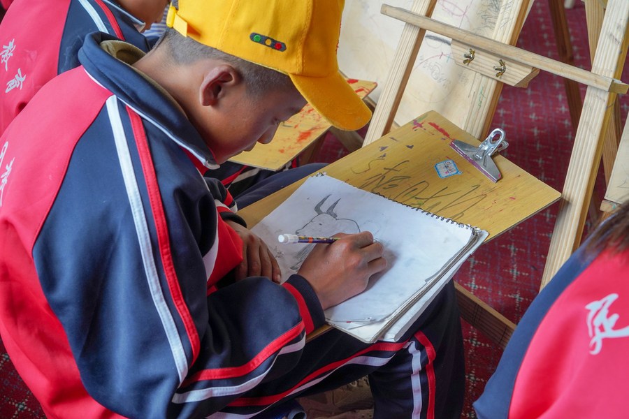 6月5日,阿旺尼曲(左一)在上美術課。