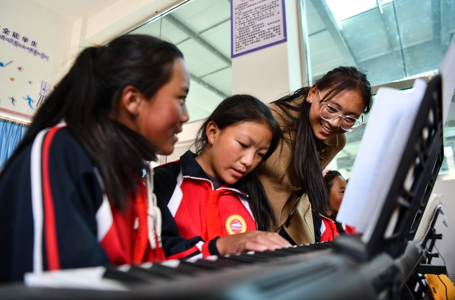 正在學習鋼琴的旦增吉宗對于上學有更深刻的認識,她的爺爺奶奶沒有上過學,一輩子從事農(nóng)業(yè)生產(chǎn);父親上過初中,母親是小學畢業(yè),他們經(jīng)過培訓成了村里的鄉(xiāng)村醫(yī)生?!鞍职謰寢屪屛液煤脤W習,爭取考上大學,成為家里的第一個大學生。”旦增吉宗說。