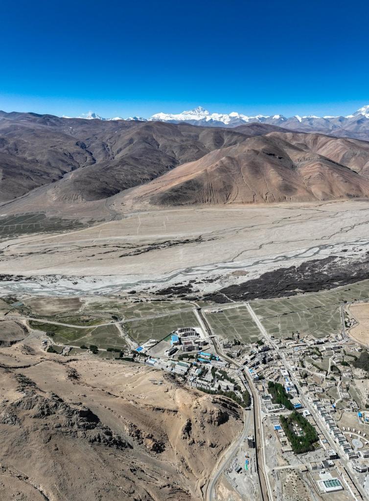 珠峰腳下的扎西宗鄉(xiāng)完全小學,這里距離珠峰只有40多公里(6月5日攝,無人機照片)。