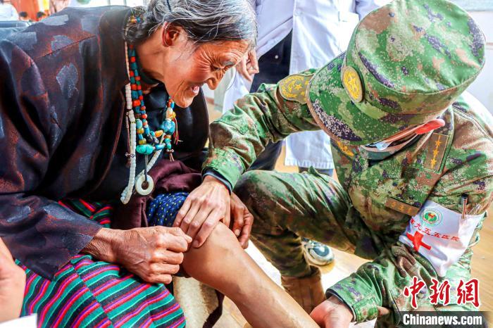 格桑措姆因膝蓋疼痛,已三四年不能行走。醫(yī)療隊(duì)軍醫(yī)抵達(dá)后,立即對(duì)老人進(jìn)行了初步篩查和救治。同時(shí),為了進(jìn)一步確診病因,還與她約定次日上門接她到醫(yī)院進(jìn)行X線檢查,并將把她安全送回家。