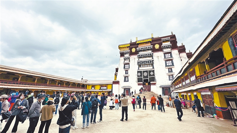 活動邀請了文化和旅游部領(lǐng)導(dǎo)、援藏省區(qū)市嘉賓、旅游企業(yè)代表以及媒體記者團200余人,前往布達拉宮、大昭寺、西藏博物館、羅布林卡等景點“打卡”。在布達拉宮東大殿,大家觀賞記載有西藏佛教發(fā)展歷史、五世達賴生平、文成公主進藏過程的壁畫;來到羅布林卡,蔥綠的樹木、鮮艷的花朵、宏偉的藏式建筑讓人流連忘返。