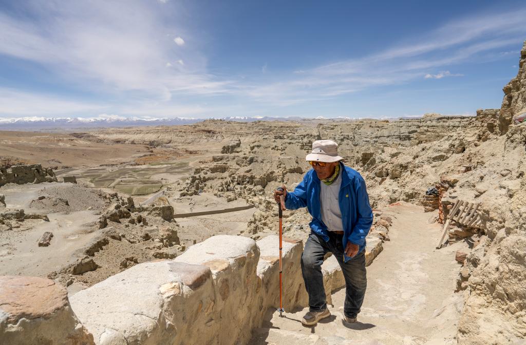 皮央和東嘎石窟遺址位于西藏自治區(qū)阿里地區(qū)札達(dá)縣境內(nèi)的皮央村、東嘎村,由皮央石窟群和東嘎扎西曲林寺遺址組成。由于兩村距離很近,遺址規(guī)模巨大,故命名為皮央和東嘎石窟遺址。仁增旺扎是一位75歲的老人,他從2002年開始被聘為當(dāng)?shù)氐奈奈锉Wo(hù)管理員,從那時起就一直守護(hù)著皮央和東嘎石窟遺址,至今已經(jīng)有20多年。