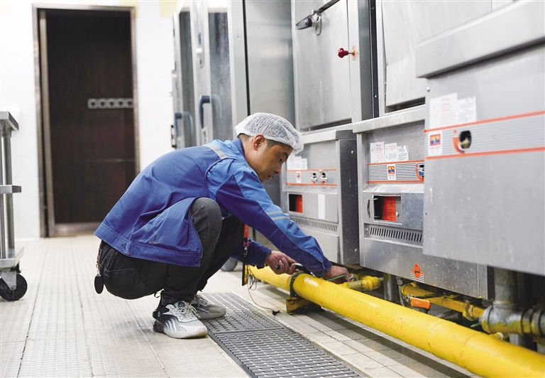 在香格里拉酒店,拉薩暖心公司工作人員對酒店的鍋爐房、廚房等地開展了燃?xì)獍踩[患排查。拉薩暖心公司客戶服務(wù)部抄表中心主任張雁龍手拿檢測儀器,對鍋爐房、廚房內(nèi)的燃?xì)夤艿浪薪涌凇⑷細(xì)庠罹?、軟管、燃?xì)鈭缶?、安全閥等全部進行了檢查,并對每一項檢查結(jié)果進行了登記。