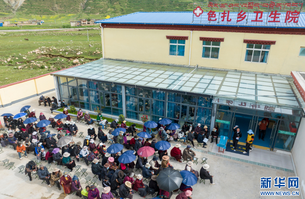 7月10日,群眾在西藏丁青縣色扎鄉(xiāng)衛(wèi)生院內排隊等待北京醫(yī)療人員。新華網 旦增努布 攝