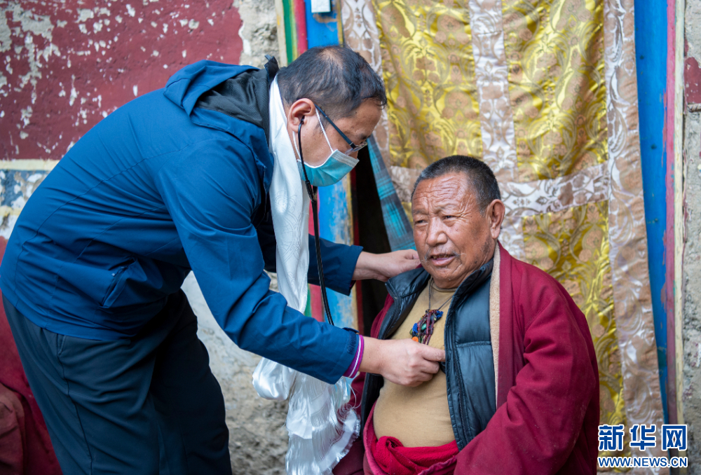 7月13日,來自北京安貞醫(yī)院的醫(yī)生在西藏丁青縣孜珠寺為僧人義診。新華網 旦增努布 攝