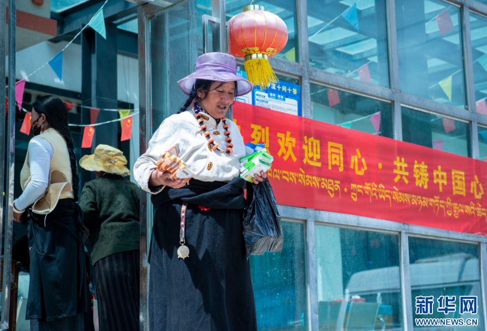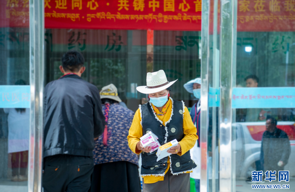 7月12日,群眾在西藏丁青縣西藏丁青縣尺犢鎮(zhèn)看完病后拿到組委會捐贈的藥品。新華網 旦增努布 攝