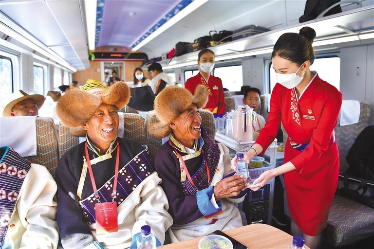“這兩年,我們與自治區(qū)政府部門(mén)及區(qū)教育廳建立聯(lián)動(dòng)機(jī)制,動(dòng)態(tài)掌握當(dāng)?shù)厝罕姵鲂行枨蠛蛯W(xué)生放假安排,爭(zhēng)取運(yùn)力政策,有針對(duì)性地制定運(yùn)輸方案,先后增開(kāi)多趟林芝—日喀則、林芝—拉薩方向的學(xué)生專(zhuān)列、旅游專(zhuān)列、務(wù)工專(zhuān)列?!崩骤F路林芝站站長(zhǎng)朱連祥介紹,靈活多樣的出行專(zhuān)列,不僅便利了各地群眾,對(duì)于促進(jìn)藏東南地區(qū)間的經(jīng)濟(jì)發(fā)展、文化交流也具有重大意義,廣大民眾共享著鐵路事業(yè)發(fā)展的成果。