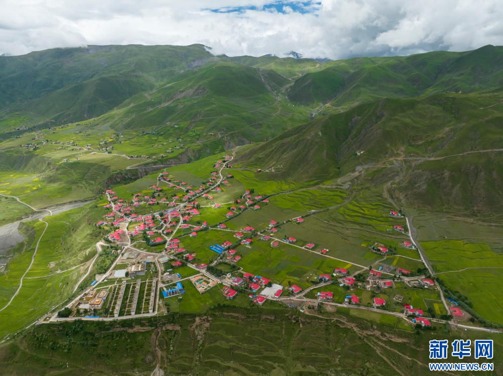7月12日拍攝的西藏昌都市丁青縣尺犢鎮(zhèn)烏巴村(無人機(jī)照片)。新華網(wǎng) 旦增努布 攝