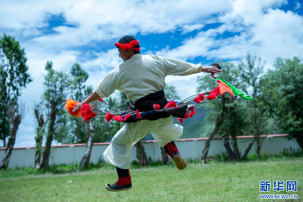 7月12日,西藏昌都市丁青縣尺犢鎮(zhèn)烏巴村文藝演出隊隊員在排練。 新華網(wǎng) 旦增努布 攝